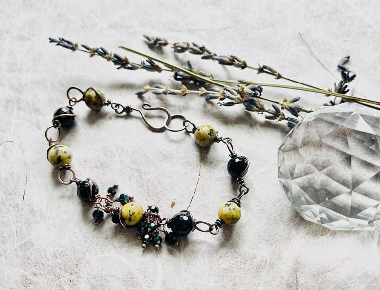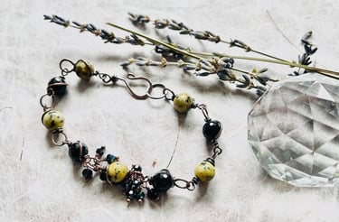 ”A necklace that feels like it was made just for me. Obsidian carved into a black cat face, with a silvery shimmer that catches the light. Hematite + faceted sterling silver chain, wrapped in vintage silk + sprigs of lavender. Gifted to me by my loving husband on the day our youngest son turned 13. And it arrived today—on the full moon 🌕 I’ve never felt energy like this from a piece of jewelry. So beautiful. The black cat and black jaguar have walked with me since childhood—appearing in real-life moments, intuitive sightings, and in deep inner work. What began as glimpses I didn’t fully understand has become a clear and constant presence. Feline spirit energy continues to weave through my life in the most beautiful ways. The artist also shares a bond with the black jaguar. This necklace was meant to find me. 🌙 I love it!.” - Patty